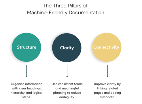 AI-driven search tools pull content from highly structured, clearly indicated documentation. Unstructured text is difficult for models to interpret.